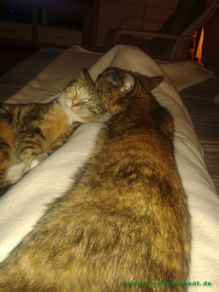 Und nach den Strapazen mit Sam hatte Frauchen natürlich auch wieder Angst, dass sich das alles mit einer Zweitkatze wiederholt. Aber Ingrid versicherte Ihr, dass wir beide sehr soziale Katzen sind und die Zusammenführung zu 99% klappen wird.