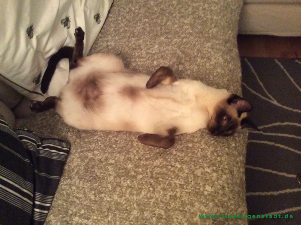 Mein Name ist Tiras (8), alle Zweibeiner sagen, ich sei besonders schön. Ich spreche sehr gerne mit meiner schönen lauten Stimme und kann mir damit immer ganz dolle Aufmerksamkeit verschaffen, besonders wenn Besuch da ist oder die Zweibeiner telefonieren. Am liebsten spiele ich mit Papierkügelchen und balge mich mit meiner Schwester herum.