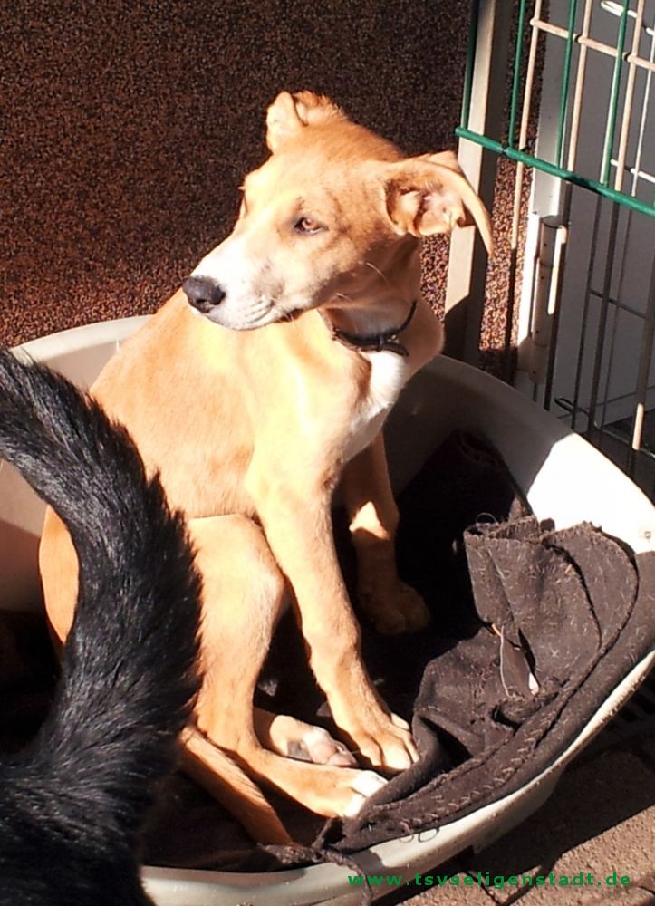 Sunnyboy hat noch nie schlechte Erfahrungen gemacht und so soll es auch bleiben. Er geht sehr schöne an der Leine und ist auch sonst sehr lernbegierig. Sunnyboy wird ungefähr mal Kniehöhe erreichen.