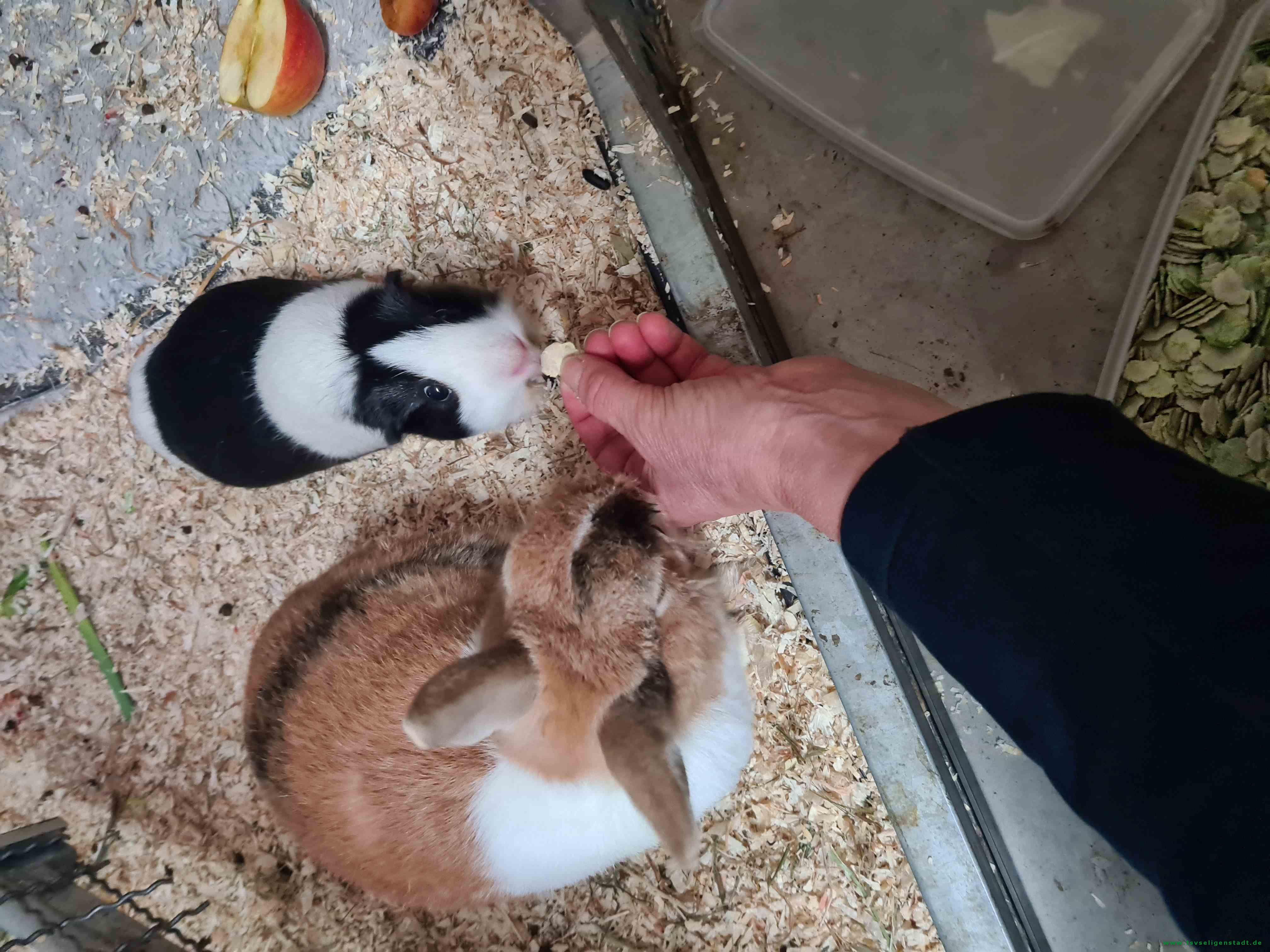 Martin und Susi lebten bisher in einer 4er-Gruppe in Außenhaltung. Nachdem zwei der vier Tiere verstorben sind, wurden die verbliebenen Tiere ins Tierheim gebracht.