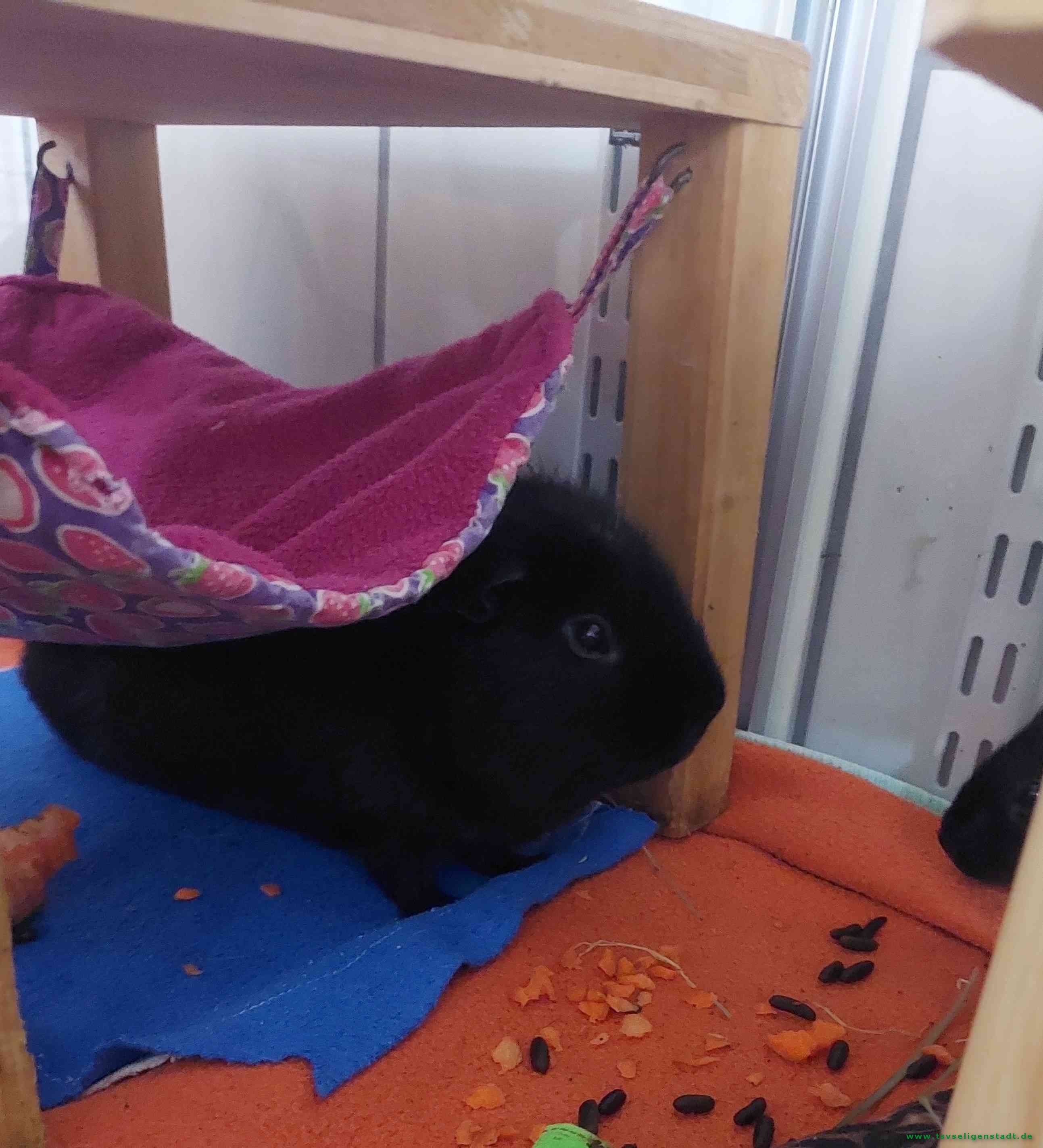 Der hübsche schwarze Teddy-Mann mit den schwarzen Knopfaugen liebt es laut nach Futter zu rufen wenn er merkt, dass die täglichen Rationen Futter in Arbeit sind. Dann rennt er immer ganz aufgeregt auf und ab.