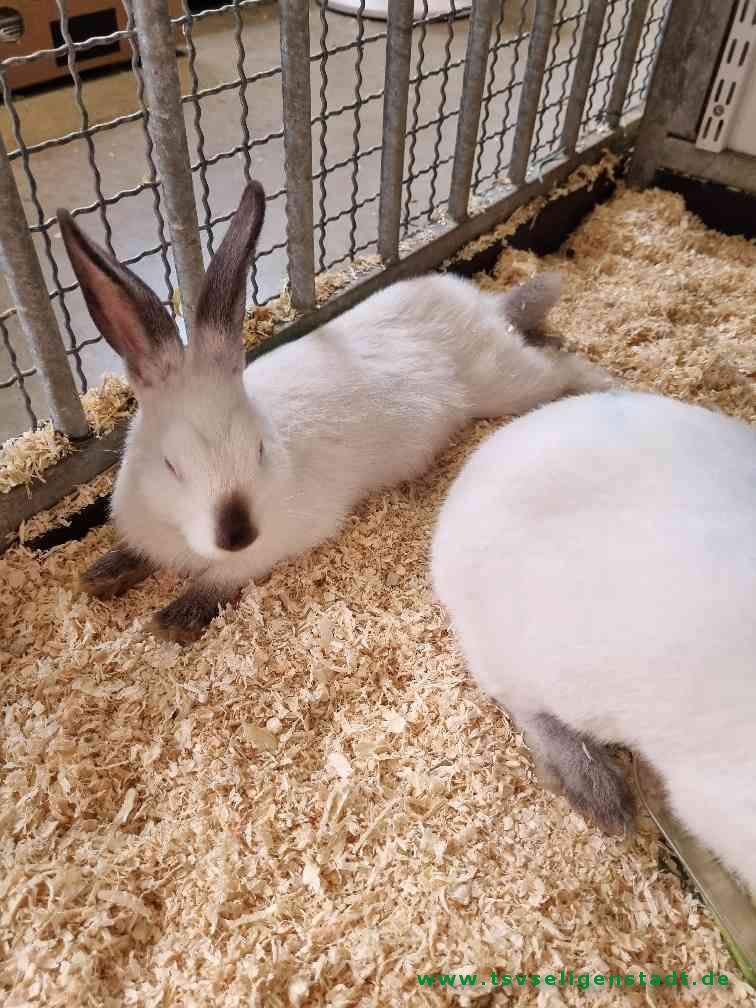 Altersbedingt ist Nelly sehr lebhaft. Da Kalifornier-Kaninchen ausgewachsen ca. 3 - 3,5 kg auf die Waage bringen, wird sie bestimmt bald ruhiger.