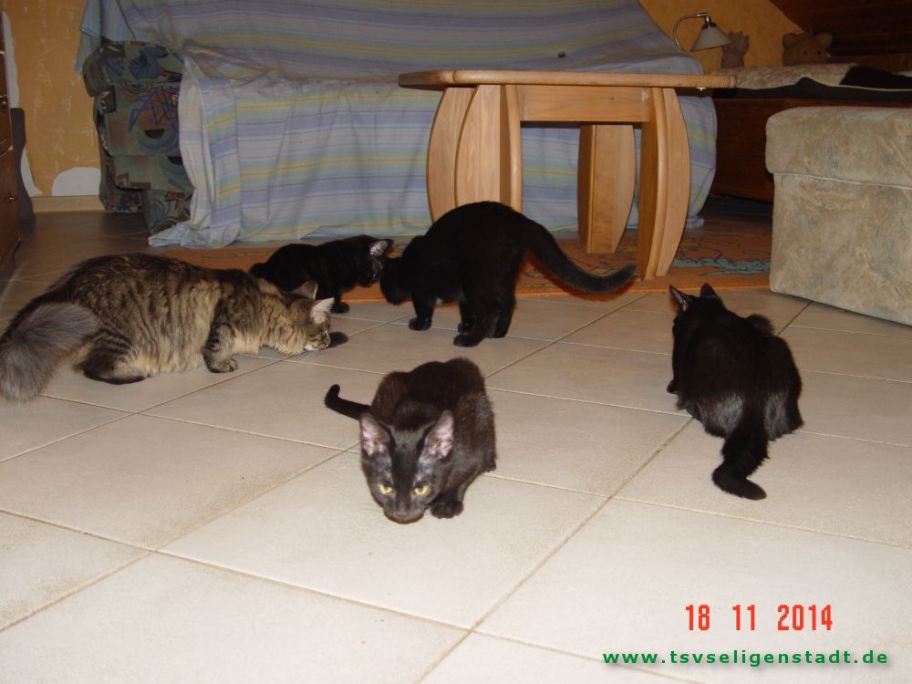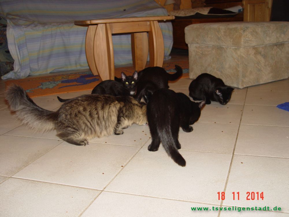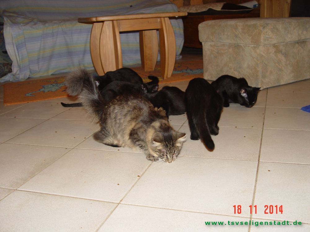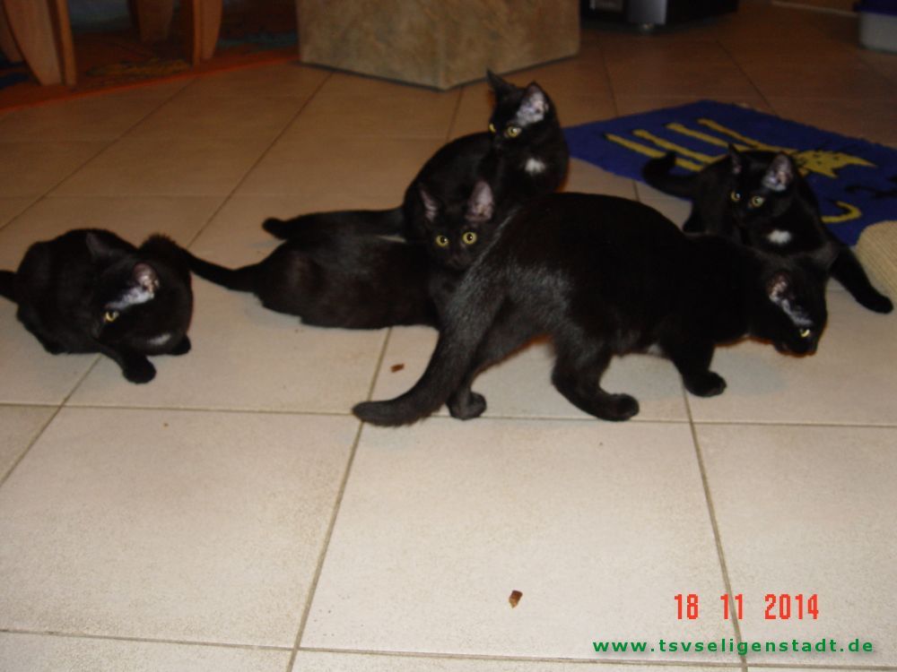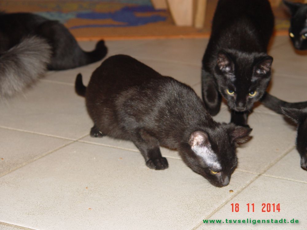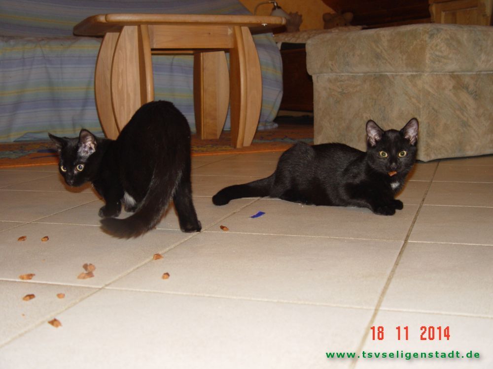Die Babys sind privat geboren worden. Die Mutter war eine schwarze Türkisch Angora, der Vater ein Straßenkater. Die Babys haben die Felllänge vom Kater, aber das Fell fühlt sich seidig, wie das der Mama an. Die Babys kamen im Alter von 11 Wochen mit massivem Durchfall zu uns. Sie hatten in ihrer Prägungsphase wenig Ansprache. Inzwischen sind sie bei vertrauten Personen sehr zutraulich. Jetzt suchen sie entweder im Doppelpack oder als Zweitkatze ein neues Zuhause in reiner Wohnungshaltung möglichst mit vernetztem Balkon.