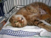 Die Katze bettelte bei einer Bäckerei um Futter. Nachdem der Besitzer der Katze nicht gefunden werden konnte und sie nicht gekennzeichnet war, wurde die Katze bei uns kastriert und aufgenommen. Sie ist sehr lieb und verschmust und eine ruhige Katze. Unsicherheit drückt sie durch Fauchen aus, lässt sich aber trotzdem alles gefallen. Ihr Fressen verteidigt sie energisch gegen andere Katzen