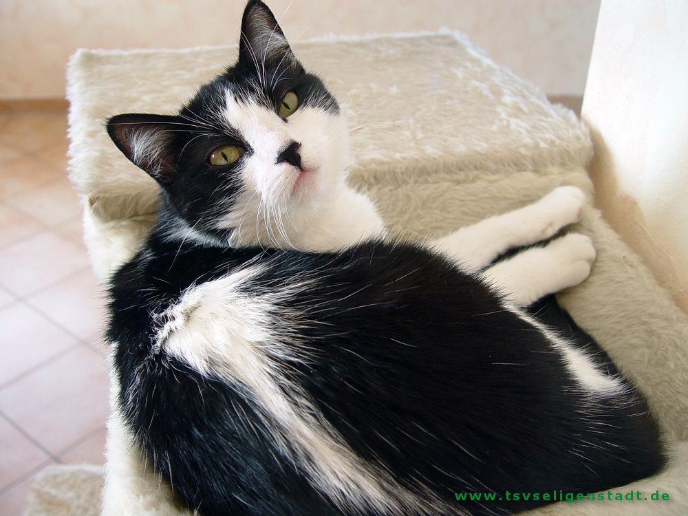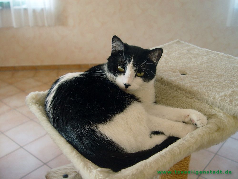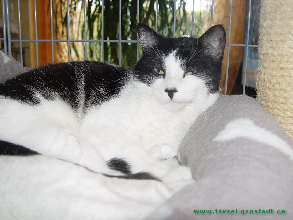 Mona war schon als Baby einmal mit ihrer Schwester bei uns und wurde zusammen mit ihr vermittelt. Monas Schwester war irgendwann nicht mehr mit nach Hause gekommen. Mona selbst wurde aus Krankheitsgründen innerhalb der Familie zurückgegeben. Mona legt nicht viel Wert auf die Gesellschaft von anderen Katzen. Sie ist sehr lieb und wird zunehmend aufgeschlossener.