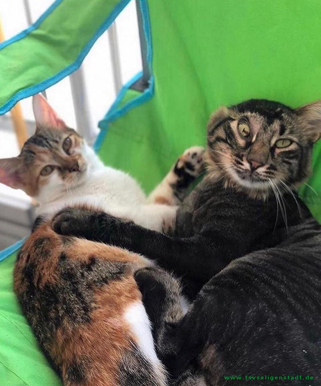 Seine Freundin, eine dreifarbige "Glückskatze" ist ebenfalls kastriert, gechipt und geimpft. Beide könnten auch getrennt vermittelt werden, brauchen dann aber jeweils einen Spielkameraden. Beide sehnen sich nach einer liebevollen Hand. Das neue Zuhause sollte ohne Kinder und ohne Hunde sein.