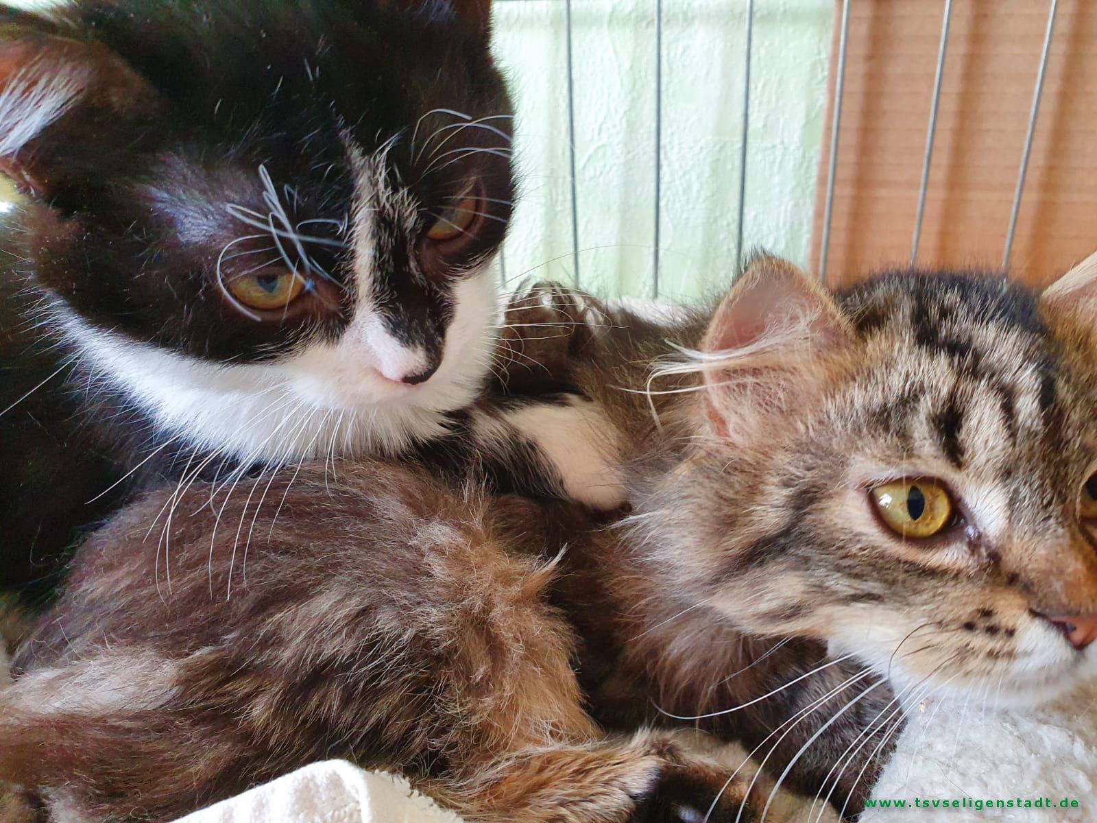 Die beiden sind geimpft und gechipt. Mit 7 Monaten werden sie auf Kosten des Tierschutzvereins kastriert und tätowiert .