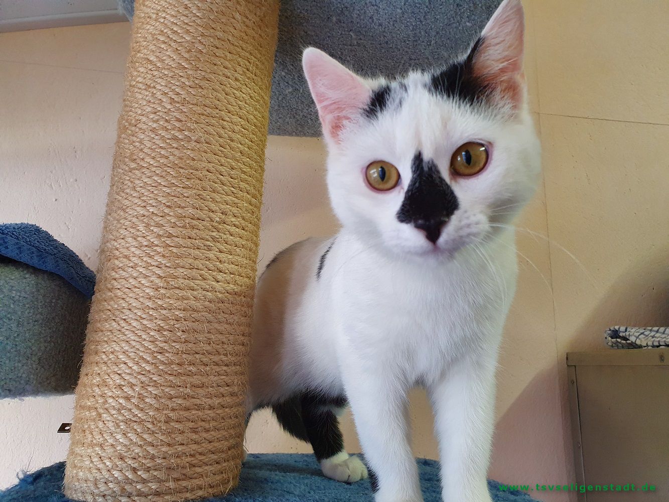Anfangs war er noch sehr ängstlich und hat viel gefaucht. Mittlerweile ist er weitaus zutraulicher geworden, er ist ein richtig lieber kleiner Kerl, sehr verschmust und natürlich recht verspielt.