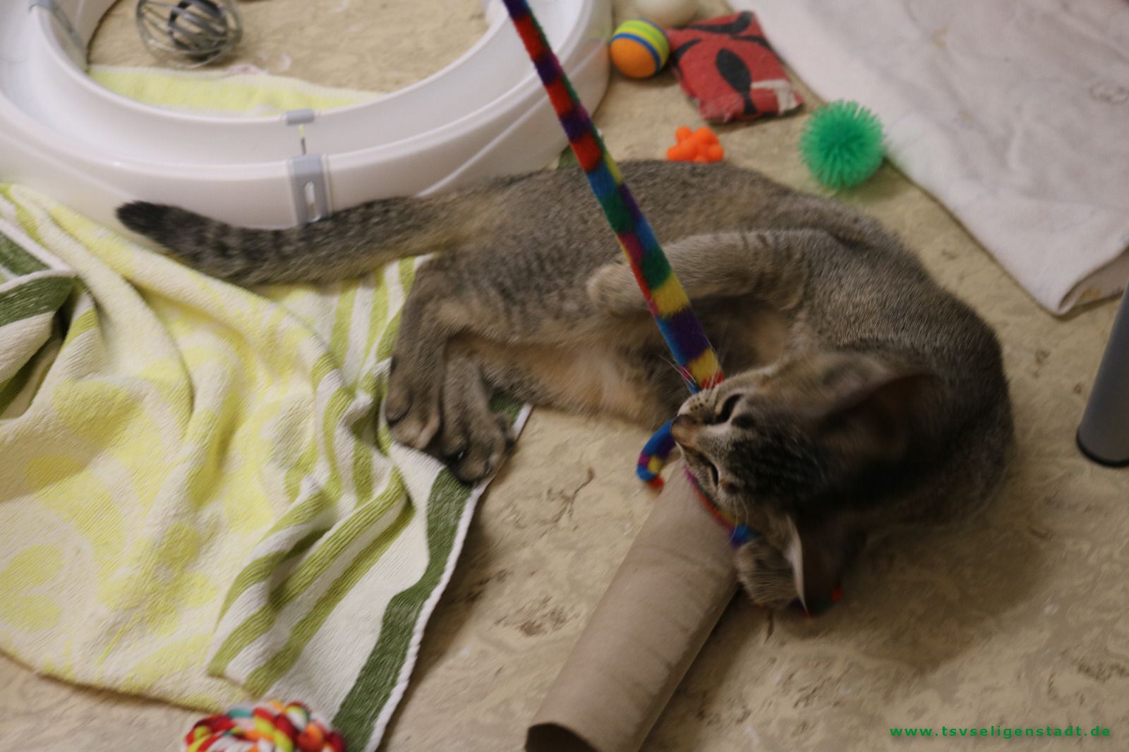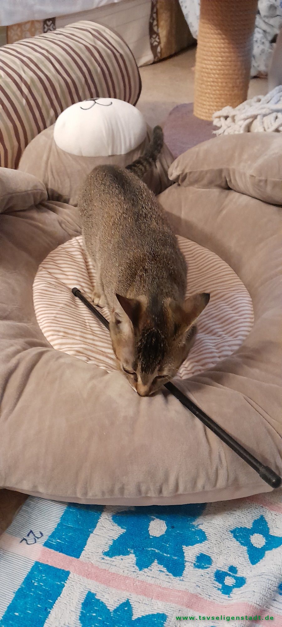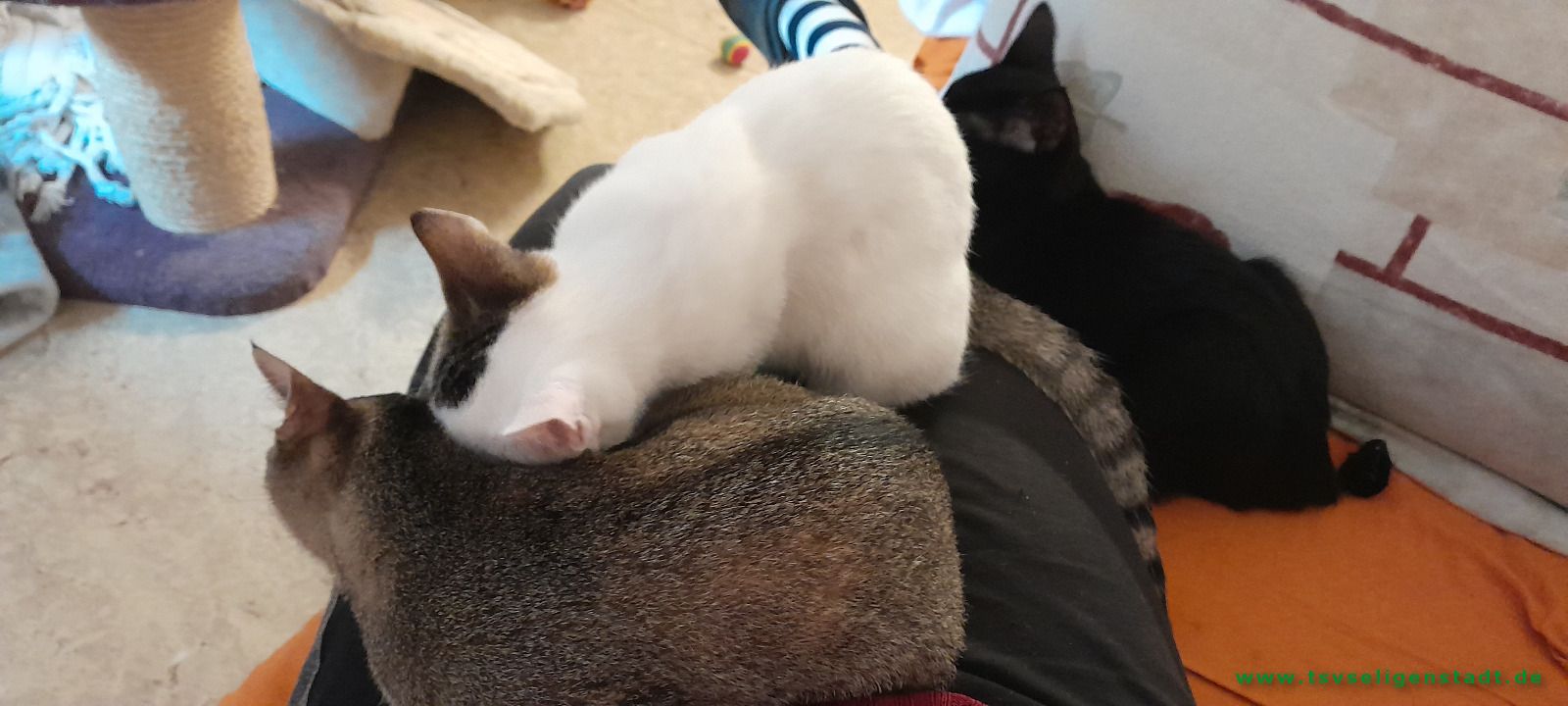 Von dem Trio Taiga, Zorro und Ben sind nur noch zwei da: Die erste im Bunde ist Taiga, auffällig bei ihr ist, dass ein Auge kleiner etwas ist, sie kann damit normal sehen und wird dadurch in in keiner Weise behindert. Taiga ist recht lieb, etwas ängstlich und scheu allem Neuen gegenüber. Wenn man ihr jedoch genügend Zeit gibt, wird sie sehr verschmust, mag Laufspiele und Klettern. Durch ihre außergewöhnliche, schöne Fellmaserung sollte sie als Freigängerin eher in einen großem Garten oder eine abgelegende Gegend ziehen. Taiga kann sehr gut mit Zorro.