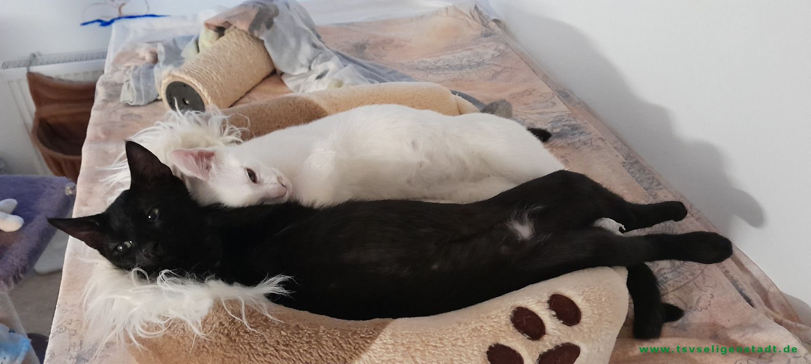 Der zweite ist der schwarze Zorro - absolut pflegeleicht - kommt mit allen aus und will immer mit allen gut Freund sein. Er ist ein richtig "Lieber", offen, sehr verschmust und kann super als Zweitkatze gehen. Zorro liebt Sonnenbäder und schnurrt für sein Leben gern. Er ist auch für "Katzenanfänger" geeignet. Er kann gerne mit Taiga zusammen vermittelt werden, das ist aber kein Muss.