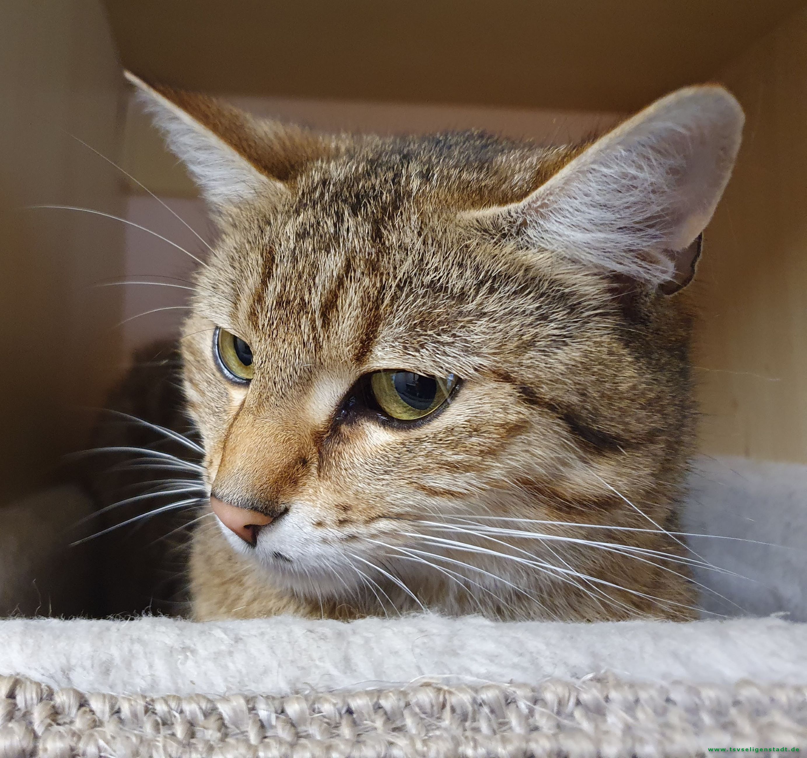 Leah ist eine liebe Katze, die gerne gestreichelt wird und sehr verschmust ist. Sie spielt gerne mit der Angel oder einem Bällchen. Leah ist in einer Umgebung mit sehr wenig Verkehr aufgewachsen und sucht deshalb wieder ein Zuhause in einer sehr ruhigen Gegend. Sie ist sehr auf Menschen fixiert und andere Katzen braucht sie gar nicht.