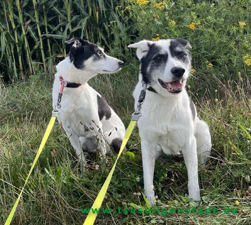 Wir haben hier zwei Whippet Mischlinge, deren Frauchen und Herrchen leider verstorben sind: der Rüde „Nemo“ und die Hundedame „Souris“.